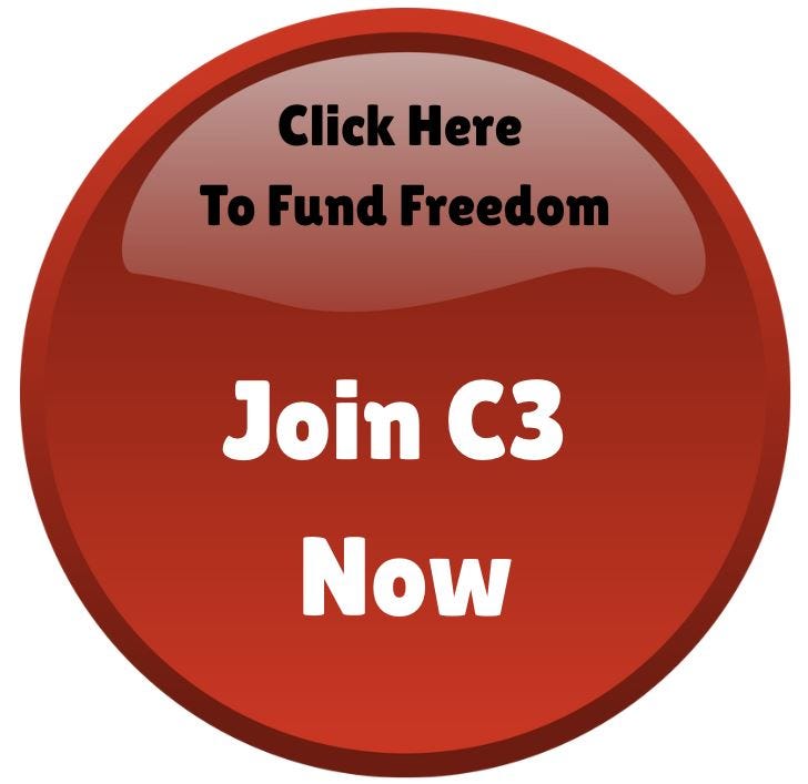 The amount of your membership in C3 is up to you. Membership dues are monthly. You decide what your membership costs on the basis of what you can afford and what your freedom is worth to you. Once you have joined, you will receive a Thank You email with the registration link for our Fireside Chat meetings. You will need to register for each meeting (which allows us to restrict it to Members Only), but there is no cost to attend.